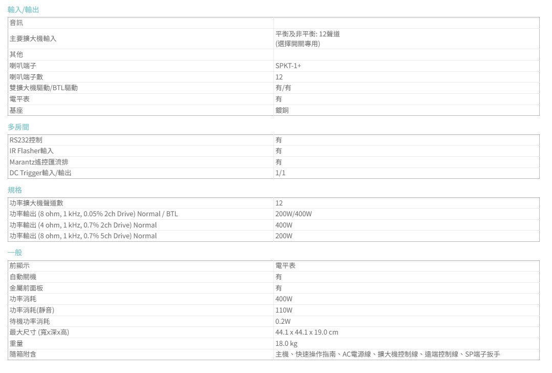 .參考級12聲道功率擴大機,每聲道可達400W(8 ohm)