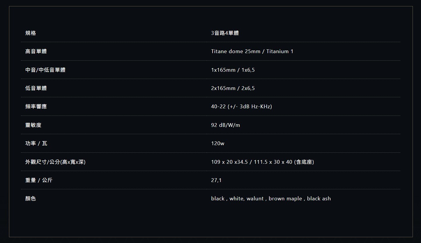Antal是在新的ESPRIT的EZ系列產品中3音路落地喇叭。高度110公分,採用玻璃底座,並配有Triangle著名hornloaded高音單體,一個中音單體和兩個低音喇叭單體。Esprit EZ的防塵網罩採用磁吸式設計,因此喇叭面板上不會有6個嵌洞,光是這點就贏了一大半。其次,Esprit EZ的中音與低音單體外框多加了一個鋁原色的裝飾圓邊,然後再把固定單體的螺絲巧妙地隱藏(其實不過就是蓋起來而已),但一看就變得更精簡,更有時尚感。再者,Esprit EZ落地款喇叭並未使用厲害的SPEC底座,改用新的強化玻璃底板,雖然減少了威猛,卻讓更多的一般家庭更愛它。