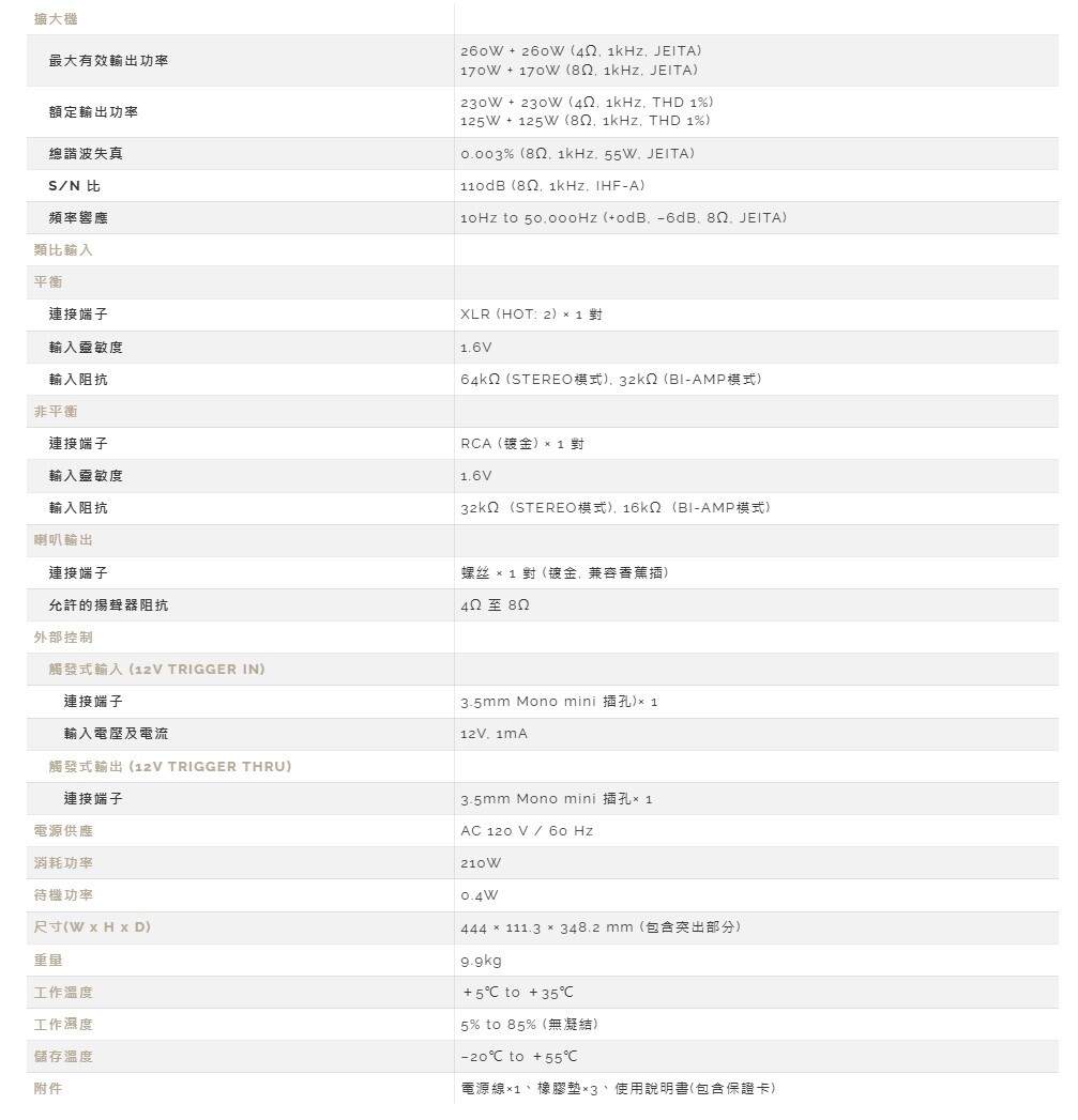 TEAC AP-701 是專為追求音質純度與驅動力平衡的兩聲道玩家所打造的高階立體聲後級擴大機。其核心設計理念並非單純追求功率數字,而是透過高電流輸出能力與低失真電路架構,讓喇叭在各種音量與頻段下都能維持穩定、精準的控制表現。
