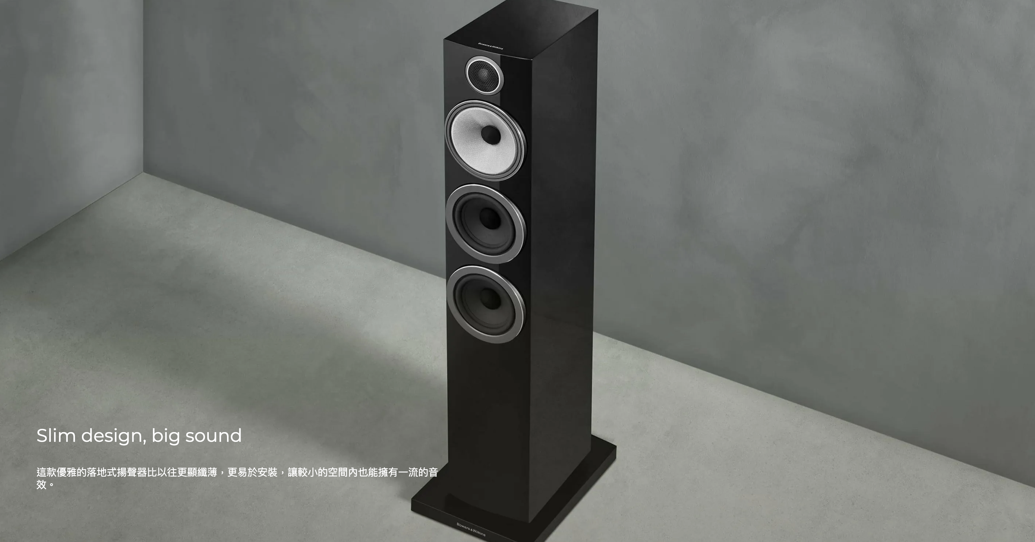 作為700 S3中最纖薄的落地式揚聲器,704 S3依然具有強大的震撼力。其兩顆Aerofoil™翼形低音音盆可確保飽滿的音場與聲音延伸性,而其Continuum FST™音盆可提供清晰的中音表現。