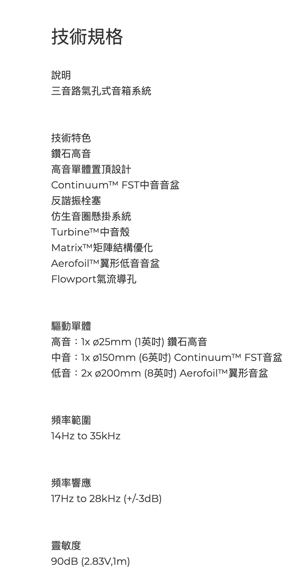 B&W 802 D4 是 800 Series Diamond 系列中兼具規模、控制力與音樂性的關鍵型號。新一代 D4 系列採用更厚實的一體成型鋁合金箱體、改良的 Matrix™ 結構,以及分離式鑽石高音模組,大幅降低箱體共振與失真。Continuum™ 中音單體讓人聲結像自然、密度真實,雙低音單體則提供深沉且收斂良好的低頻能量。802 D4 的聲音走向中性透明,動態範圍極大,既能重現錄音細節,也能完整呈現大型音樂場面。適合中大型客廳、專業視聽室與追求全面性能的玩家。台北音響提供完整展示、搭配與試聽服務。