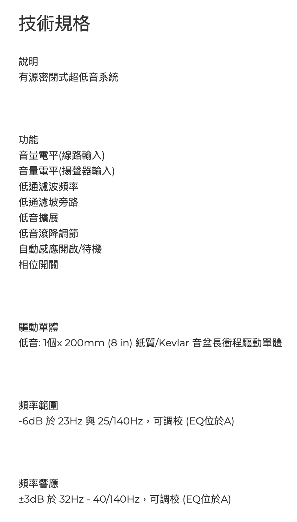 ASW608 搭載的 8 吋單體,專為快速、緊湊且震撼的低頻而設計,即使在極小空間中,也能展現出色表現。