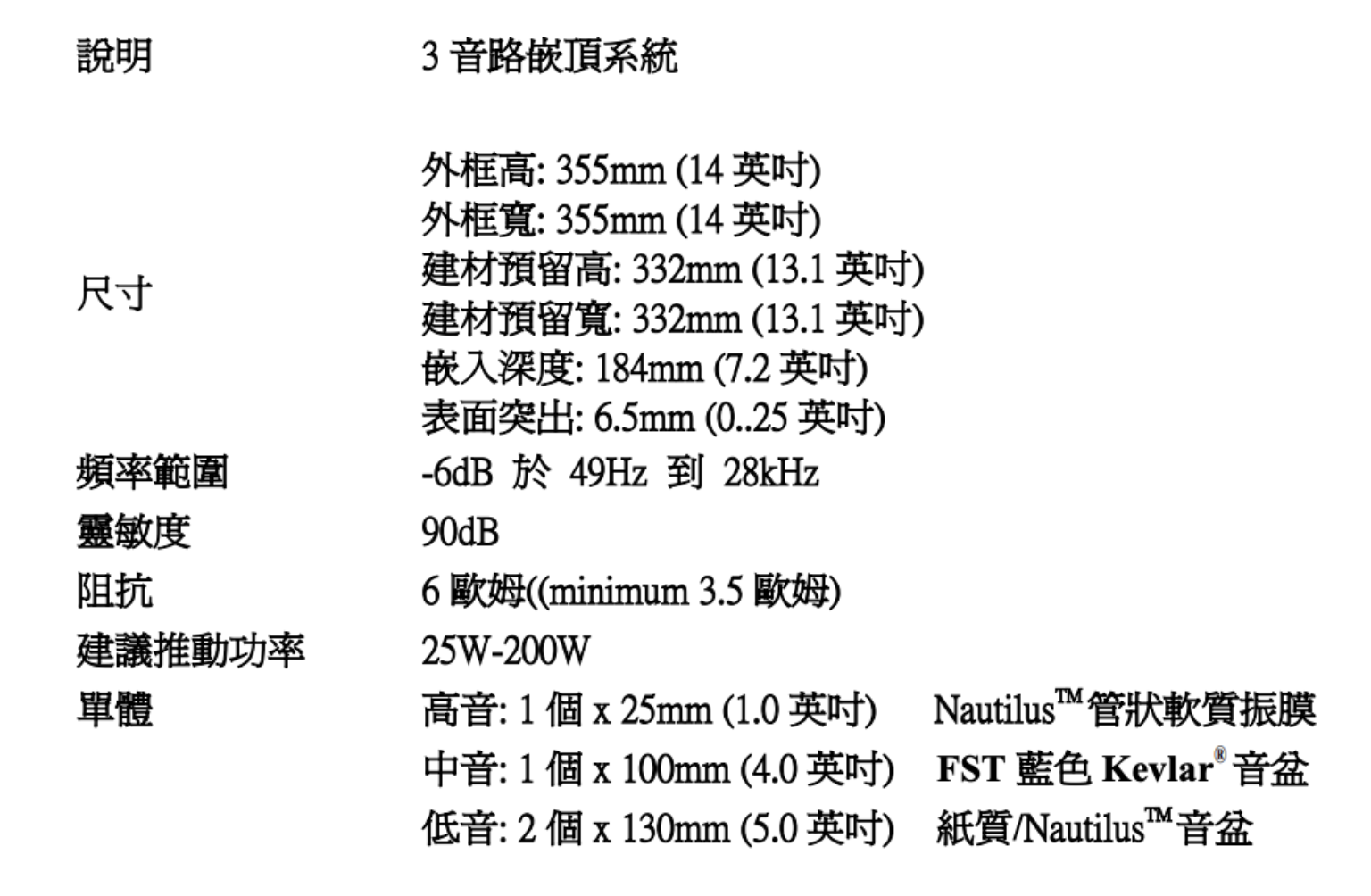 CCM7.3 是一款三音路揚聲器,它採用了真正的高保真技術,例如一個 25 毫米(1 英寸)鸚鵡螺導管式高音單體、一個 100 毫米(4 英寸)FST™ Aramid Fiber中音單體及兩個 130 毫米(5 英寸)紙質/Kevlar 低音驅動器。