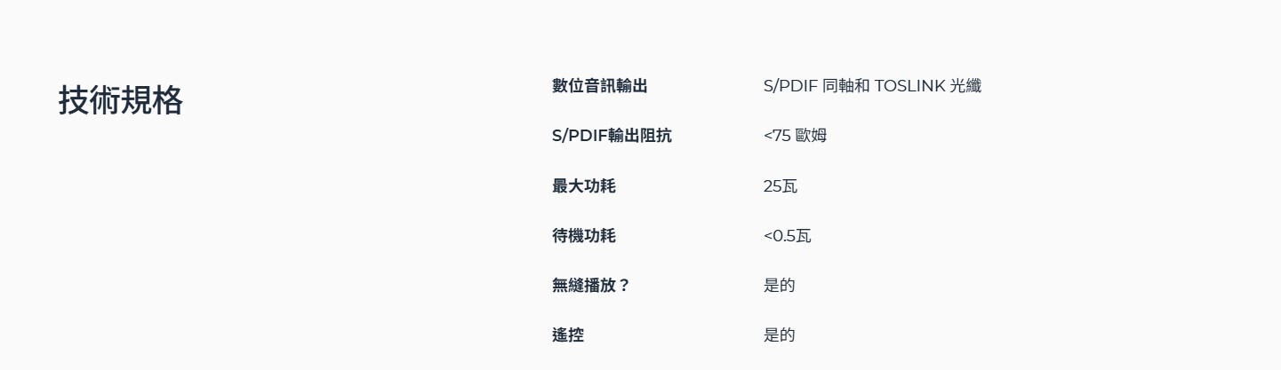 僅數位 S/PDIF 同軸和光纖輸出 – 用於純數位音訊訊號