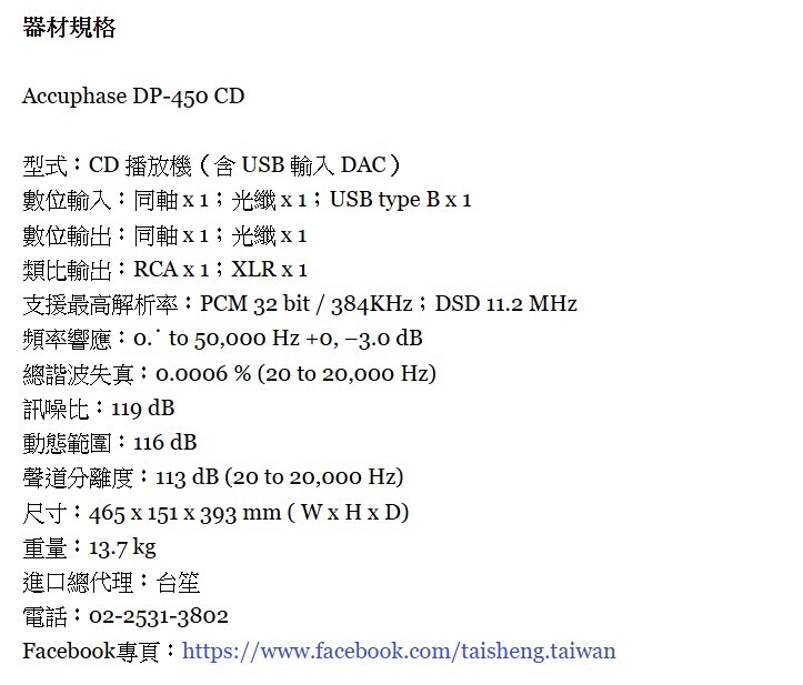 Accuphase DP-450 具備高精度 MDS DAC、全新強化 CD 讀取平台與純淨類比輸出,呈現自然溫潤、細節豐富且極低失真的音樂表現。適合作為 Hi-End 系統入門升級選項。