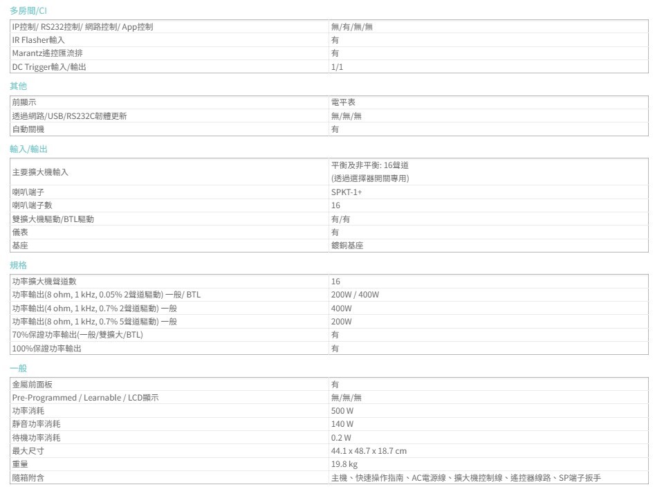 AMP10為參考級16聲道、每聲道200W擴大機,搭配AV10使用,打造高級家庭劇院系統,具有Marantz HDAM、電流反饋擴大和平衡線性輸入等規格。