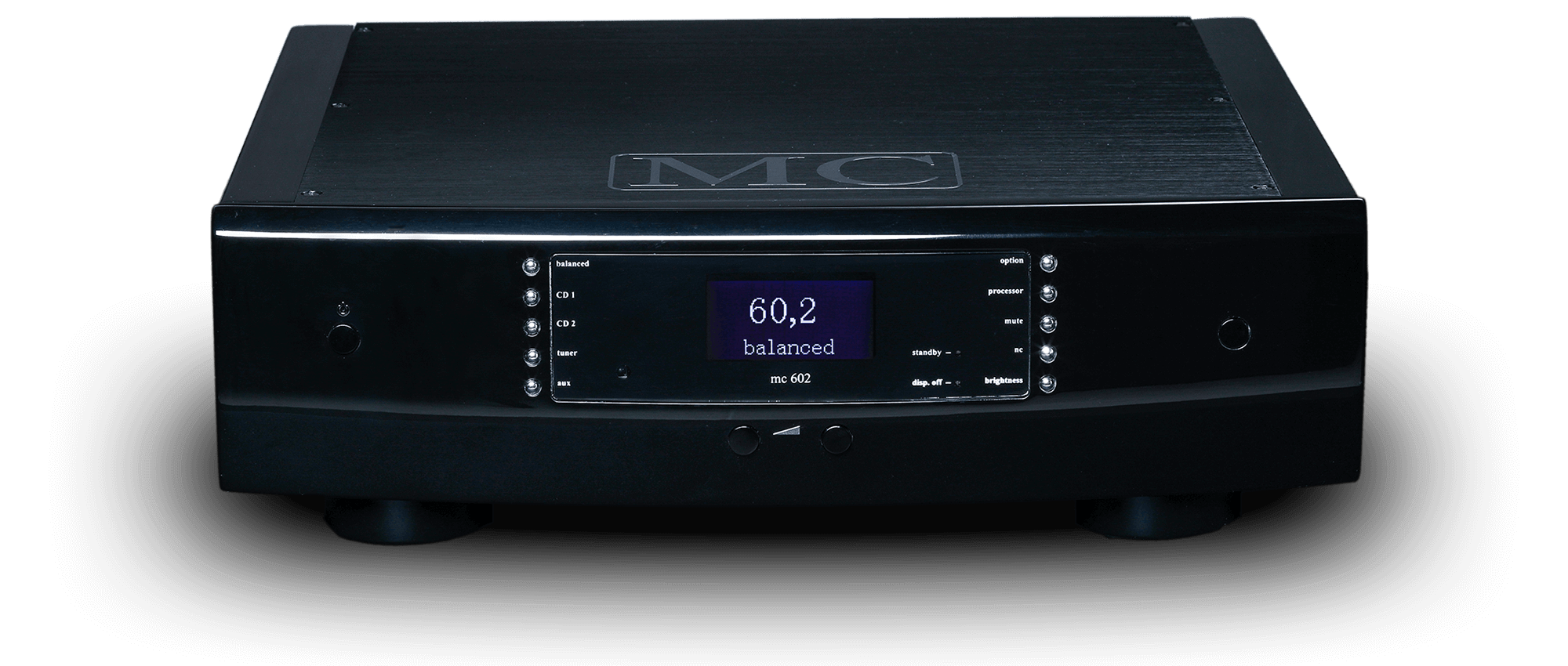 MC 602 前級,採用木及金屬構成複合式機體。全平衡式放大線路設計,以最短傳輸路徑減低干擾及信息流失,即使大音量播放下,保持豐富音質及極寧靜的背景。