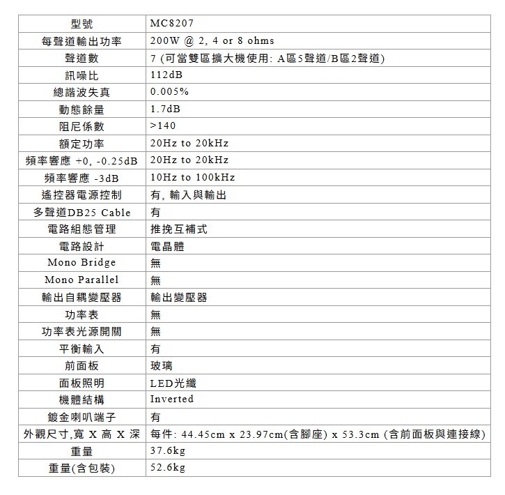 聲音表現上,MC8207 呈現寬闊的音場定位與細緻層次,低頻強勁控制、高頻柔順通透。無論是動作大片或音樂演出,都能重現臨場實感。