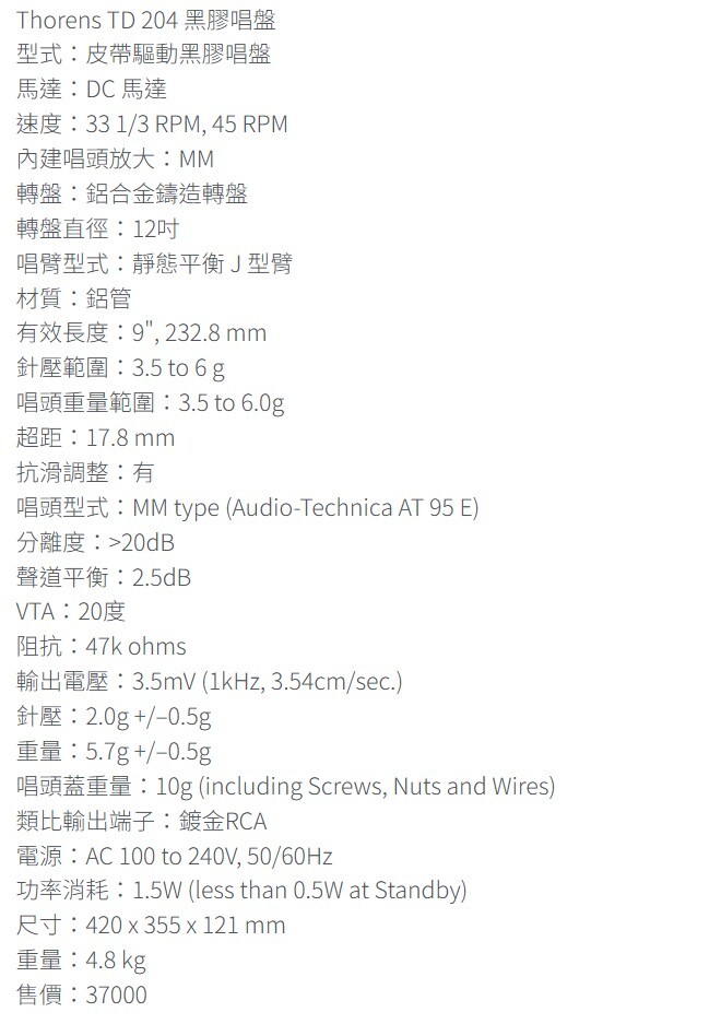 Thorens 是歷史悠久的音響品牌,而且他們不光是重視 Hi End 頂級產品,更照顧入門黑膠的族群,其 100 系列與 200 系列,都是相對容易入手的黑膠唱盤,這裡介紹的 TD 204,算是入門進階,也是 200 系列最高階的款式。