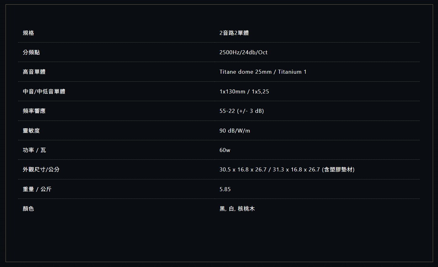 Titus是在新的ESPRIT的EZ系列產品中2音路書架喇叭。高音單體使用 TZ2500B鈦球頂 ,以及天然纖維素膜材質,底座增加橡膠墊,以減少振動