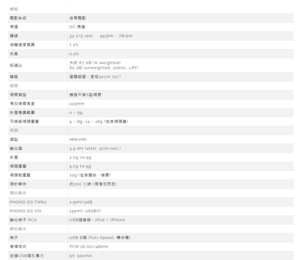 最大特色是 內建 Bluetooth 藍牙輸出,可直接連接藍牙喇叭、耳機或音響系統,免去額外線材與繁瑣設定;同時支援 USB 錄音功能,能將黑膠音樂轉存成數位檔,保存收藏或方便手機播放。這對於想把黑膠「聽得更方便、保存更長久」的用戶來說,是非常實用的加分項。